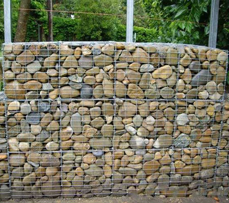 格賓籠是由金屬線材編織的角形網(六角網)制成的網箱。石籠網由高抗腐蝕、高強度、具有延展性的低碳鋼絲或者包覆PVC的以上鋼絲使用機械編織