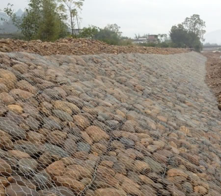石籠網護坡還有較好的抗沖性。石籠網護坡要應用在河岸,海邊堤坡防護長期經受風浪拍打侵蝕但石籠防護工程的防沖系數是*般拋石防護工程防沖系數的兩倍,石籠護墊防護工程中的塊石即使產生位移,此時變形后的護墊結構將調整,達到新的平衡,而整體不會遭到破壞,從而有效保護岸坡土壤不遭破壞。因此安全系數高。