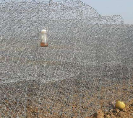 鍍高爾凡石籠網是由經鍍高爾凡(5%-10%鋁鋅合金+稀土元素)防腐處理的低碳鋼絲經機器編織成的六邊形雙絞合鋼絲網,在工廠做成符合工程要求